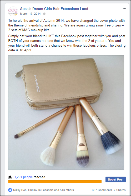 This is a very successful campaign, reaching 3291 people and generating 357 comments.